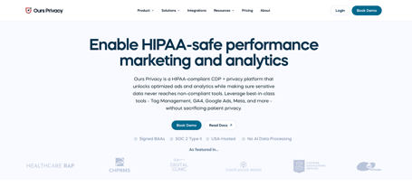 About the brand: Ours Privacy is a HIPAA-compliant customer data platform (CDP) built by healthcare marketers for healthcare marketers. The platform helps health systems, digital health companies, and medical brands modernize their marketing while navigating a rapidly evolving privacy environment. Ours Privacy integrates with major channels, including Google Ads, Meta Ads, CRM systems, scheduling platforms, data warehouses, and more. For more information, visit www.oursprivacy.com.