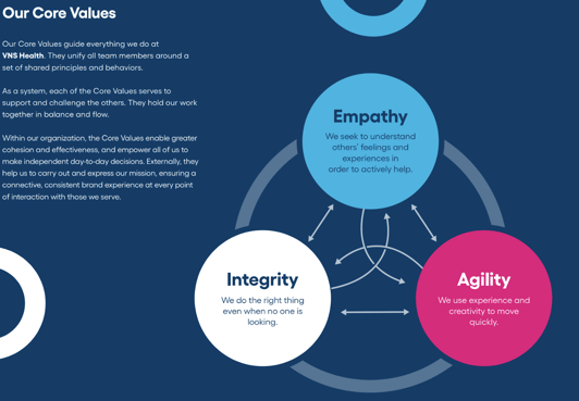 Empathy, is actually one of VNS Health’s core values. Here is an excerpt from their brand guidelines.